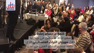 كلمة السفير الفلسطيني حسام زملط في بريطانيا خلال مهرجان التراث الفلسطيني الذي أقامه منتدى التفكير العربي